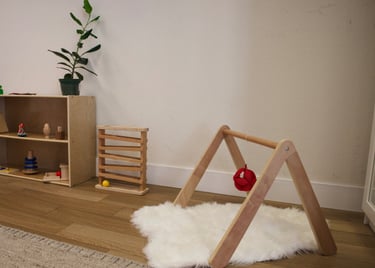 ✔️ Our infant environment is thoughtfully prepared with natural materials, soft textures, and simple objects that invite exploration without overwhelming developing senses.