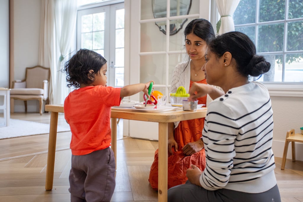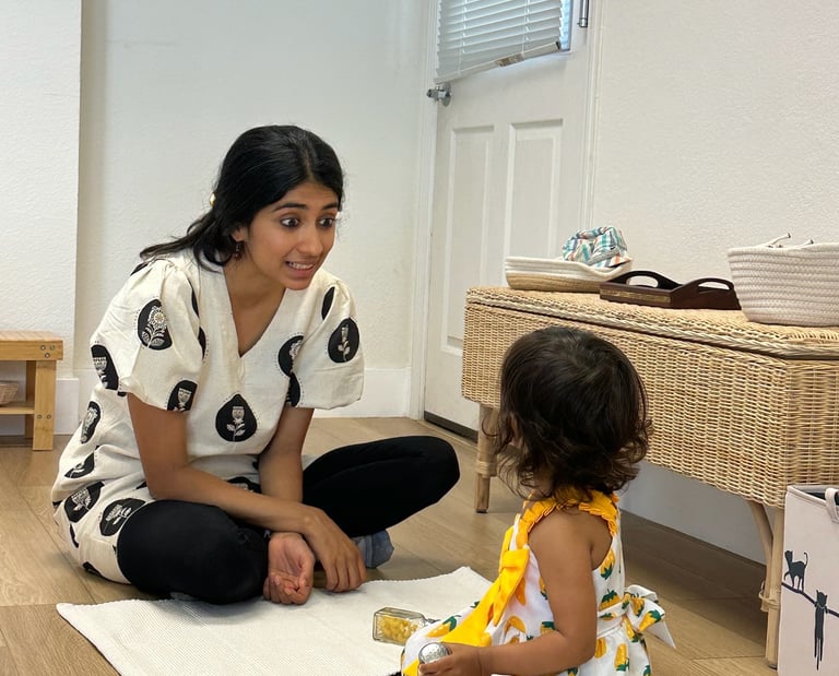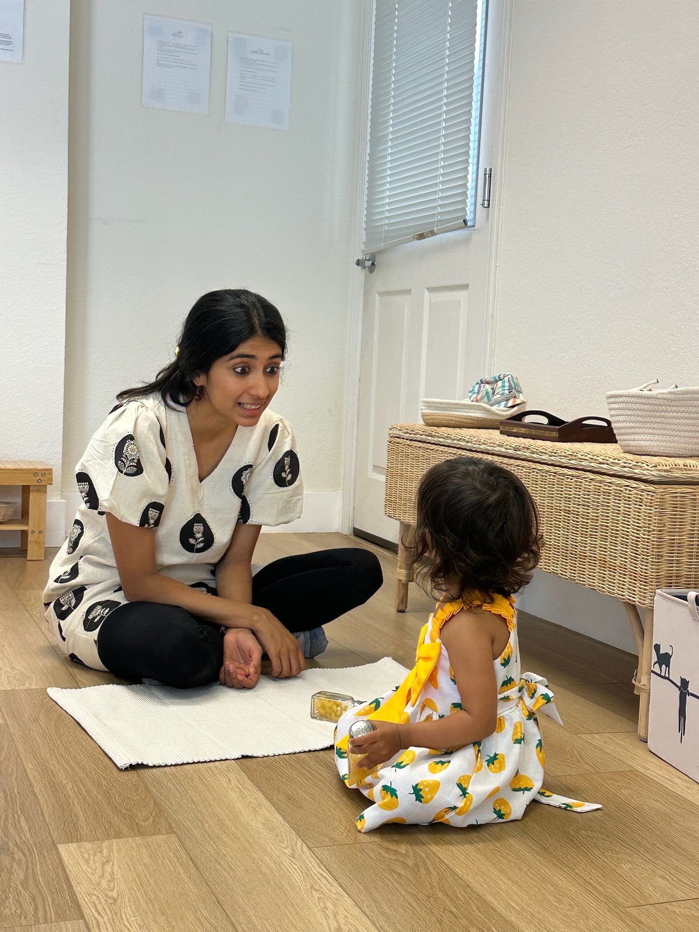 Your toddler explores independently. You observe, connect with other parents, and learn from Janani & Alyssa.